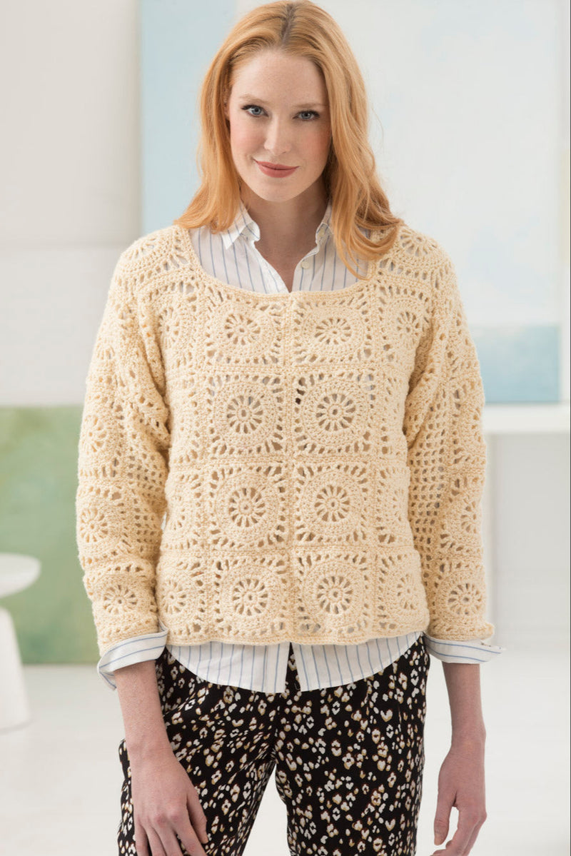 One Motif = about 4 1/2 x 4 1/2 in. (11.5 x 11.5 cm);9 mesh squares + 8 rows = 4 in. (10 cm) in Mesh insert pattern.BE SURE TO CHECK YOUR GAUGE.