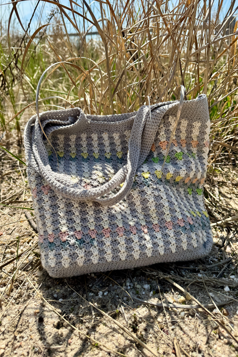 Take the Saltaire bag wherever your day goes—whether that’s to the beach, the farmer’s market, or just out and about. It’s the perfect size to carry all your essentials, plus your current WIP (because we all need to bring a little crochet along, right?). This bag is worked in the round from the bottom up, and the attached handles mean there’s almost no finishing—yay for less work! Plus, small projects like bags are a great excuse to have fun with color, so don’t be shy—get a little funky with it!