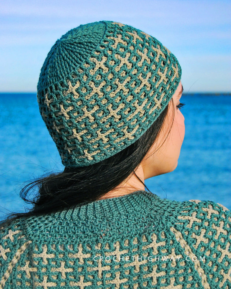 A sister pattern to the Scorpio Raglan, the Scorpio Beanie uses the same reversible stitch pattern so you can make yourself a matching set. The beanie is worked from the top down, starting with the crown and increasing your way down until you reach the final circumference. This is where the interlocking fun starts!