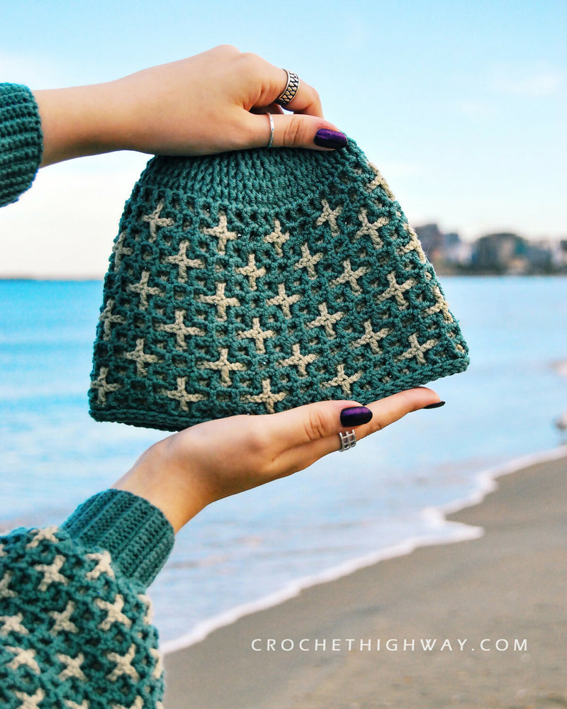 Like most CrochetHighway patterns, the Scorpio Beanie comes with step-by-step instructions and tutorial photos including on how to check for gauge. The instructions and tutorial photos walk you through every step along the way with no guesswork left for you. The pattern also comes with a stitch chart for the gauge swatch.