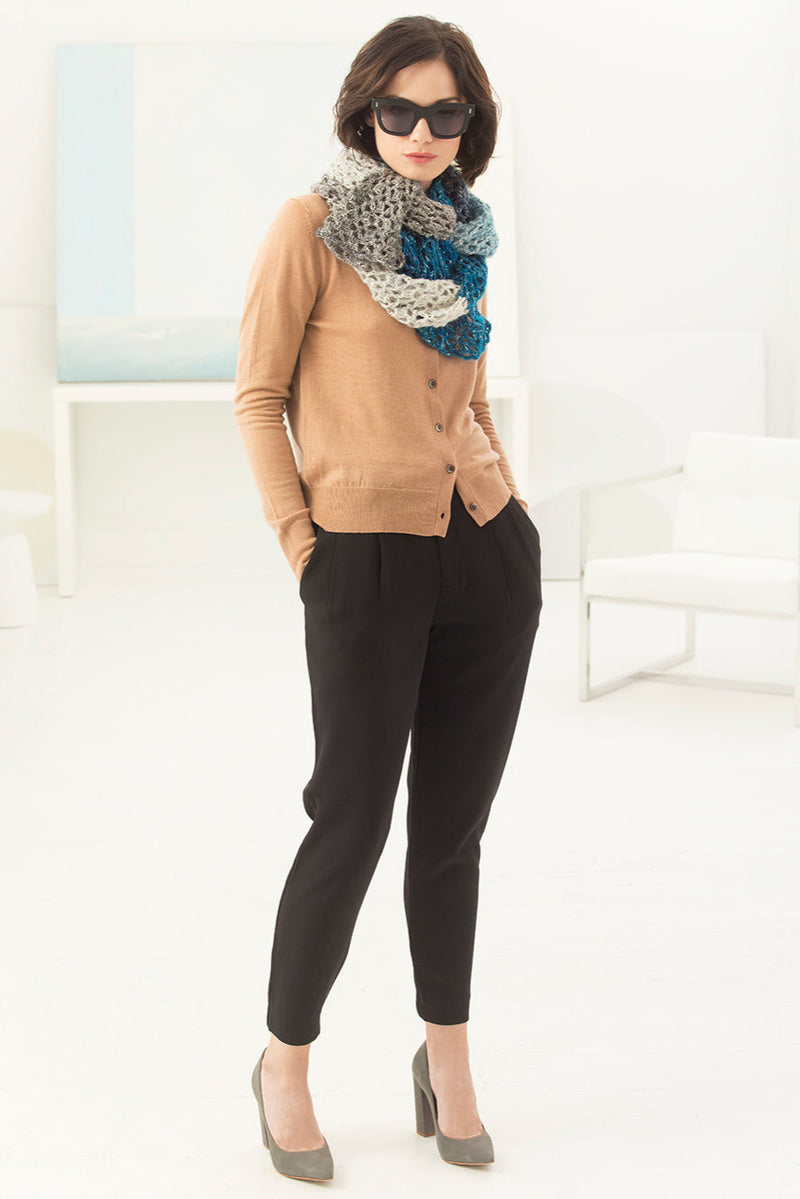 3 pattern reps = about 5 in. (12.5 cm). Note: One pattern rep consists of (ch 3, sc) twice in odd-numbered rows and (ch3, 3 dc, ch 3, sc) in even-numbered rows.