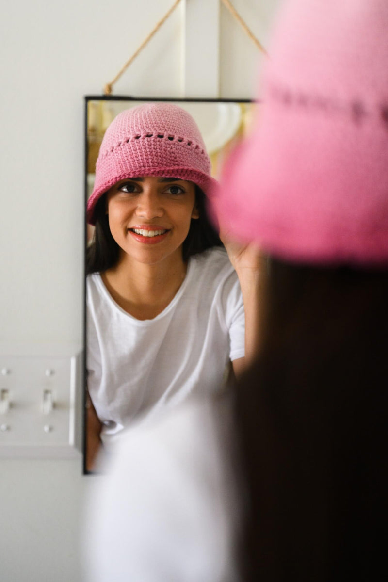 The Shandy Bucket Hat is a trendy hat with a gently sloping brim that provides some shade and a relaxed, casual look. The Mandala® Gradient yarn adds depth to the hat, with colors blending smoothly across the stitches, giving it a dynamic and eye-catching appearance.