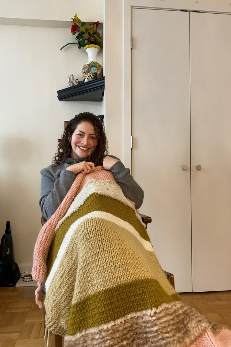 The Shi Show Knit Blanket is a knit blanket pattern made with super bulky weight yarn that has a skill level of beginner.