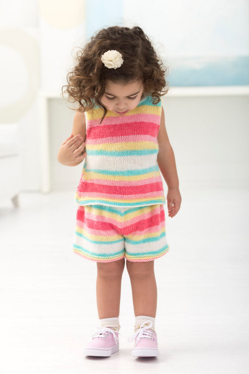 Top. Circumference at Chest About 22 (23) in. (56 (58.5) cm). Finished Length About 12.5 (14.5 ) in. (32 (37) cm). Shorts. Finished Waist About 26 (28) in. (66 (71) cm), without elastic. Finished Length About 7.5 (9) in. (19 (23) cm).