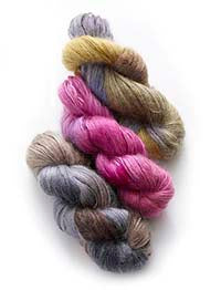 This exquisite combination of mohair and silk has a luxurious drape and feel. The silk gives the yarn a lustrous shine. The mohair adds an alluring halo of whispery soft fiber. A worsted-weight yarn, it can be used for anything from scarves and shawls to sweaters and coats. Also creates beautiful cables and lace. Hand-painted in beautiful multi-colors.Yarn Category