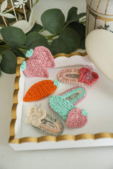 Handmade with love, these crochet barrettes add a whimsical touch to any hairstyle. The butterfly, strawberry, and carrot designs make them perfect for girls and women alike. Use them to add a playful pop of color to your spring wardrobe!
