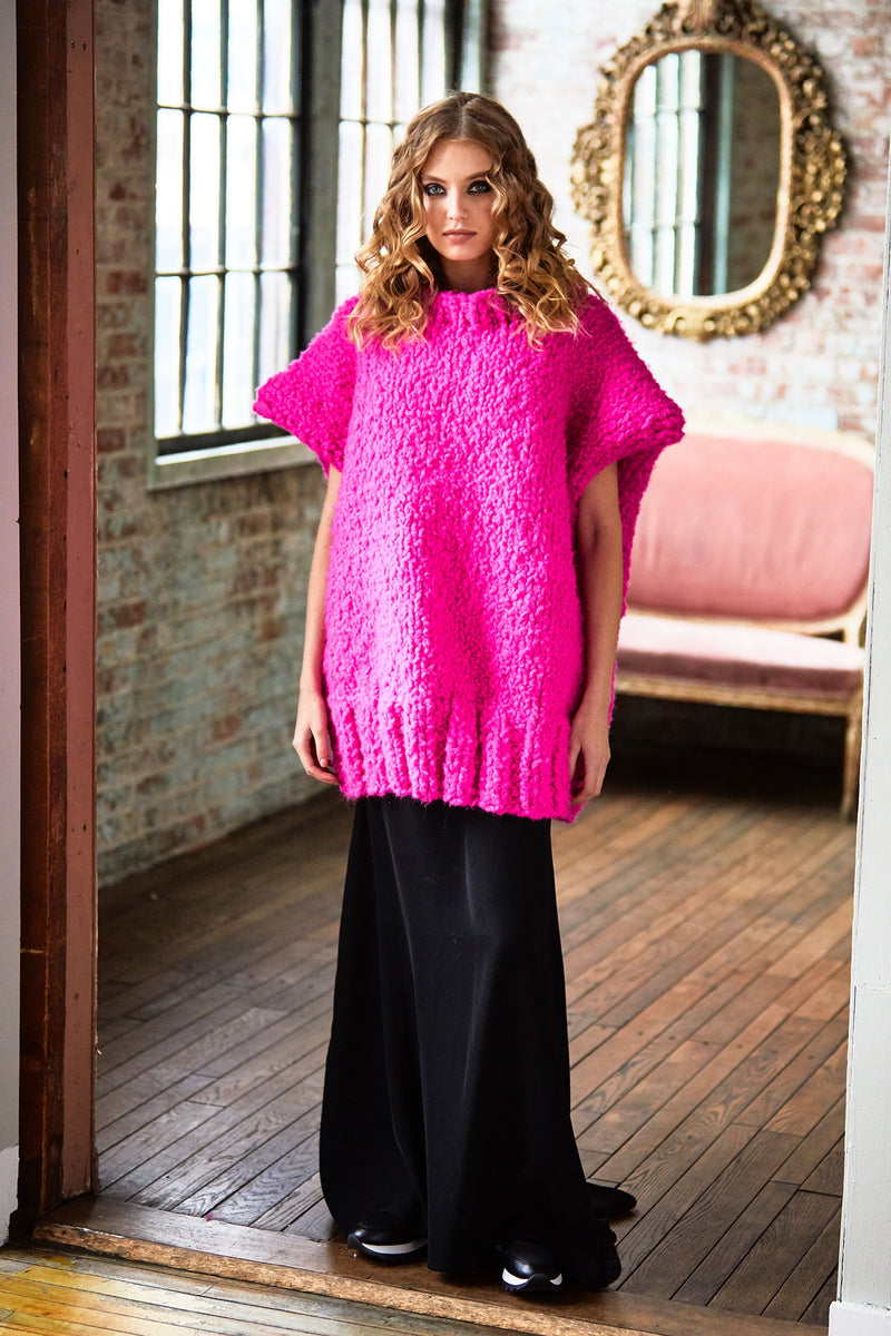 The Statement Tunic is a knit tunic pattern made with jumbo weight yarn that has a skill level of easy.