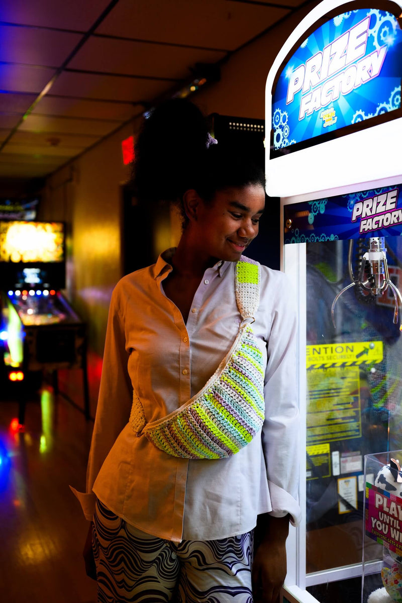 Put a glowing twist on the belt bag trend with this crochet pattern. DIY Glow Cozy yarn is made up of a glow-in-the-dark tube around a soft, cozy core. Not only will you love the cozy feel of your new bag, the polyester fabric is easy to care for. A winning combo for your favorite new accessory!