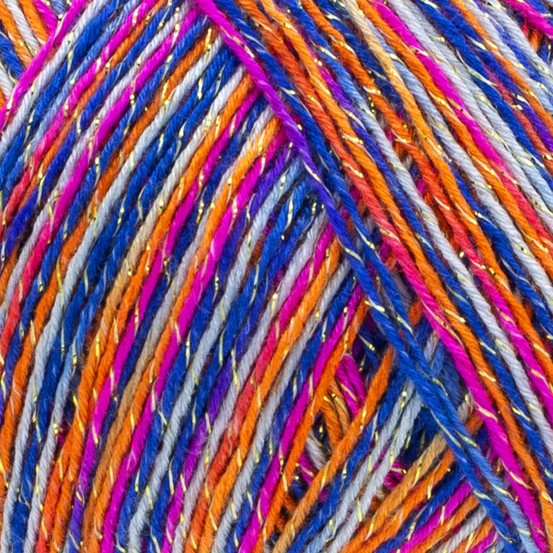 Summer nights, a multi-colored CYC 1 yarn that is twisted with a thin strand of metallic thread, is perfect for knitting or crocheting shawls, scarves, or any top that needs a bit of bling. Have some solid worsted weight yarn in your stash? Run a strand of Summer Nights with it and you will have created a unique yarn with a hint of color and sparkle.