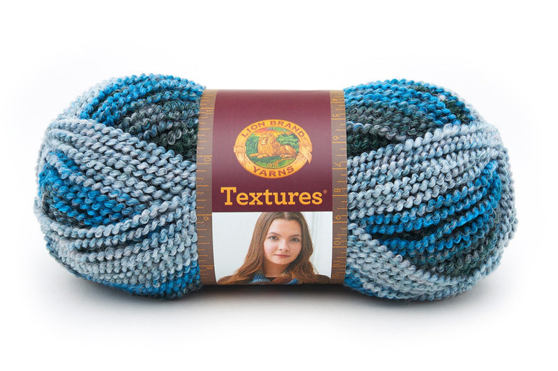 Textures® is a worsted-weight, self-striping boucle yarn that creates a beautiful medley of complementary colors. Each colorway is inspired by the color palettes found in nature, such as the forest, ocean, meadows, and skies. The tightly twisted, consistent nature of the boucle makes the yarn easy to knit and crochet with, so everyone—even a beginner--will get neat and professional looking stitches. Textures® works up beautifully to create easy care garments, afghans and accessories.