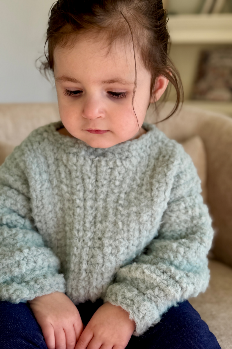 Fluffy? I crocheted this little sweater for my toddler and when she felt it she said “is fluffy”, so this seemed like a good name for her sweater!