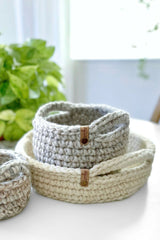 The Little Handle Basket pattern comes in 3 fun sizes, includes an cute handle on each side, and makes the perfect decorative storage piece. The baskets are flexible, yet sturdy, and can be made in an array of beautiful colors!