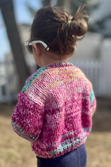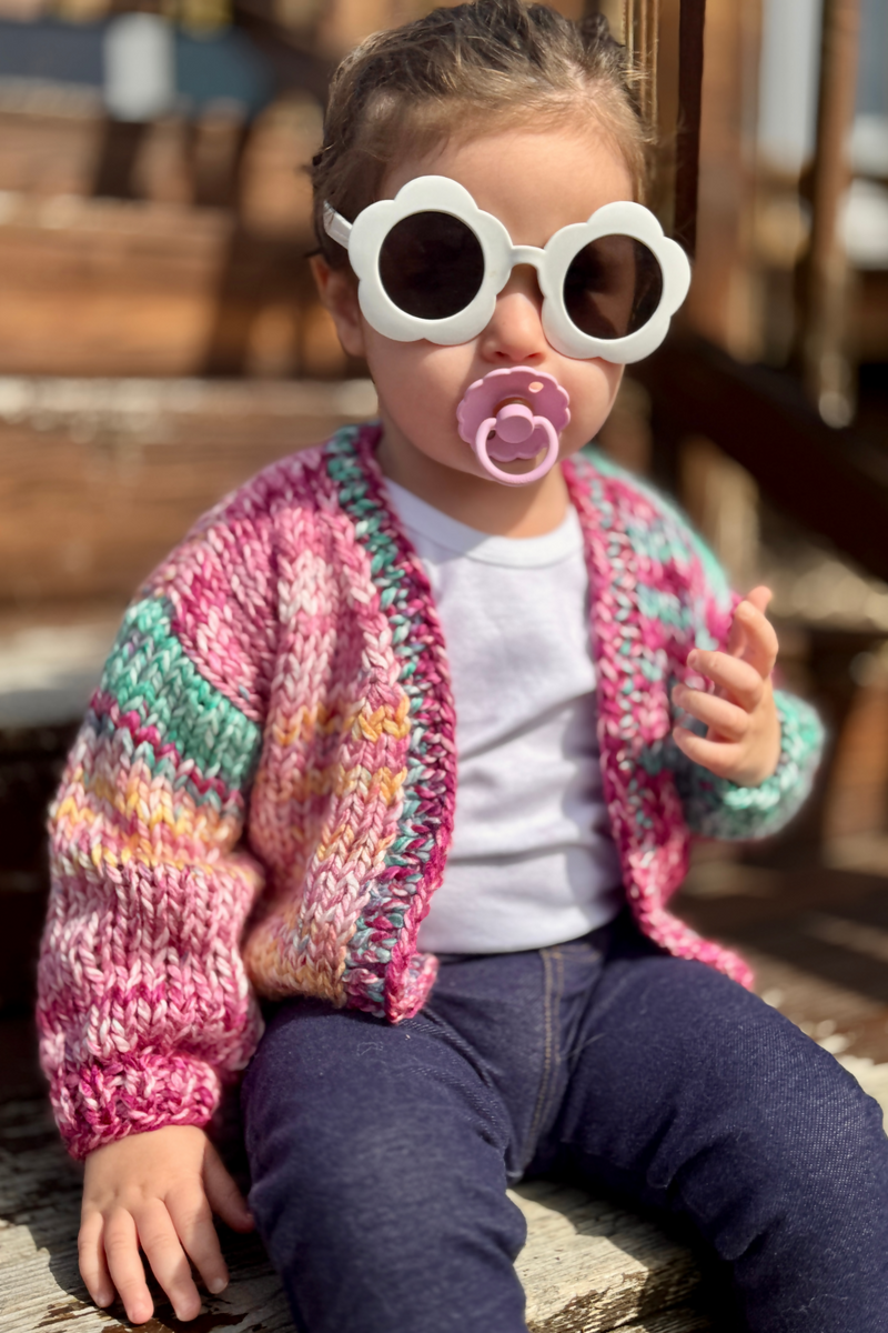 Colorful and fun, Mandala Impressions is the perfect match for the Playground cardigan. This simple sweater is easy for your little one to wear and move around in. The bulky weight yarn means this project will go from WIP to FO in practically no time. You might find yourself knitting more than one!