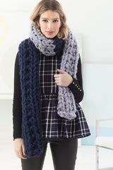 The Two Color Scarf is a knit scarf pattern made with jumbo weight yarn that has a skill level of easy.