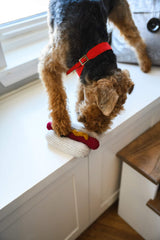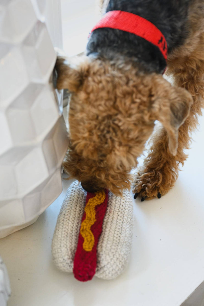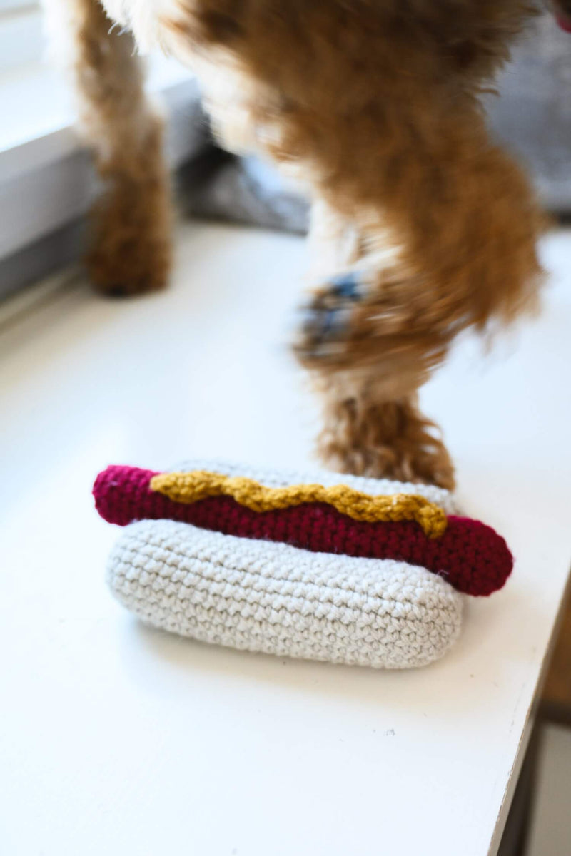 Give your furry friend the gift of fun with this adorable crocheted hot dog toy! The Wiener Pet Toy is an easy crochet pattern worked in pieces and sewn together for a one of a kind toy for your best friend.