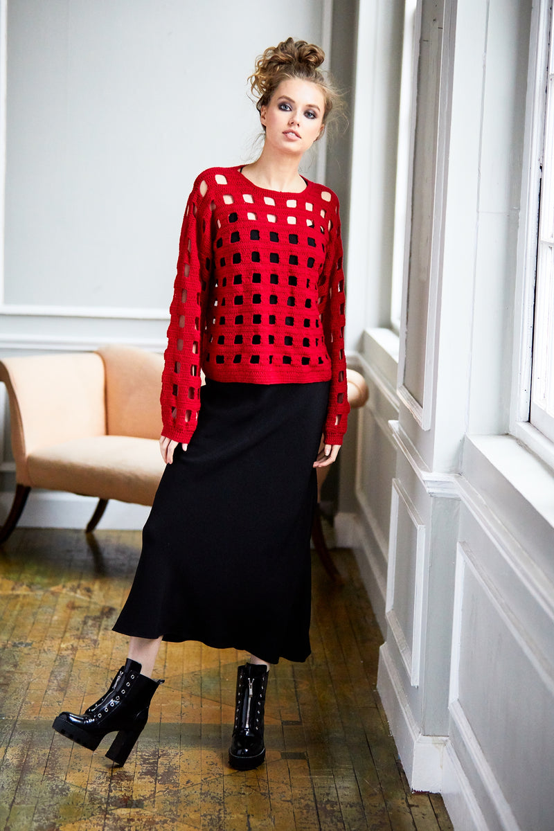 20 sts + 12 rows = about 4 in. (10 cm) in Open Squares pattern.