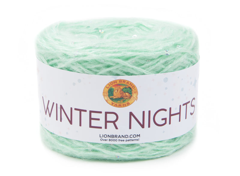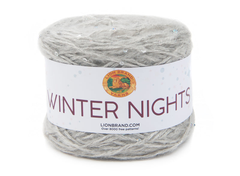 Small iridescent sequins glint along the lofty strand of this yarn, like sparkling stars tucked between clouds on winter nights. Pair Winter Nights yarn with simple stitches and let the yarn shine. Try working it up loosely on larger needles for a quick faux openwork shawl.