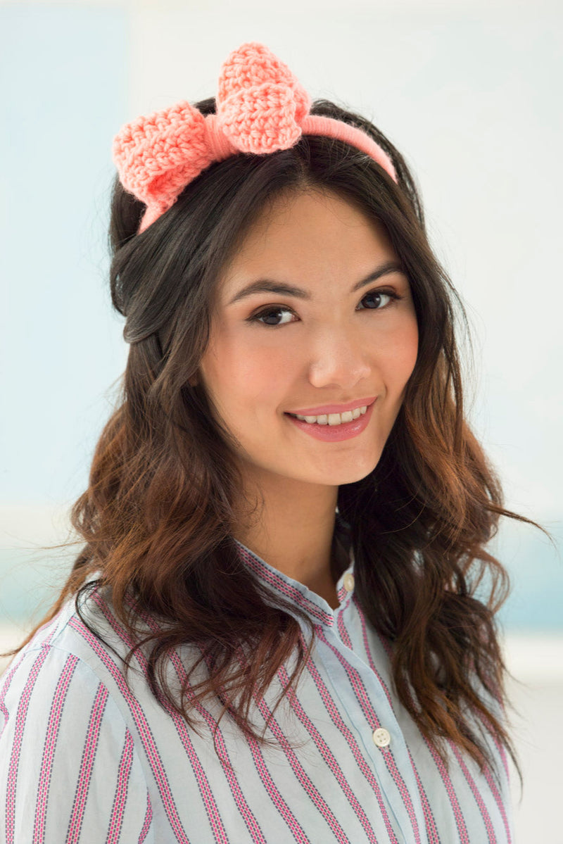 The Wrapped Headband With Crochet Bow is a crochet accessory pattern made with medium weight yarn that has a skill level of easy.