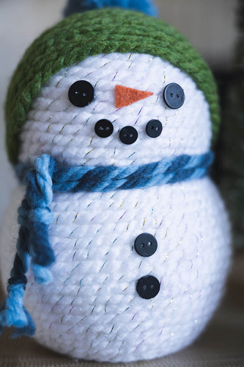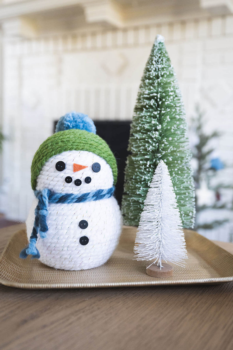 Get creative with your DIY winter decor! Customize your snowperson with different colored yarn or buttons for a totally unique decoration. No knitting or crochet experience is required to make this easy craft.