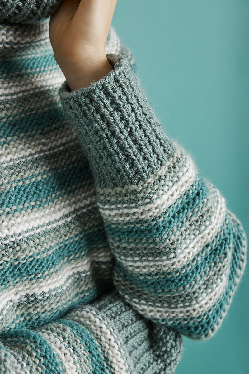 16 sts + 20 rows = about 4 in. (10 cm) in Rev St st (p on RS, k on WS).